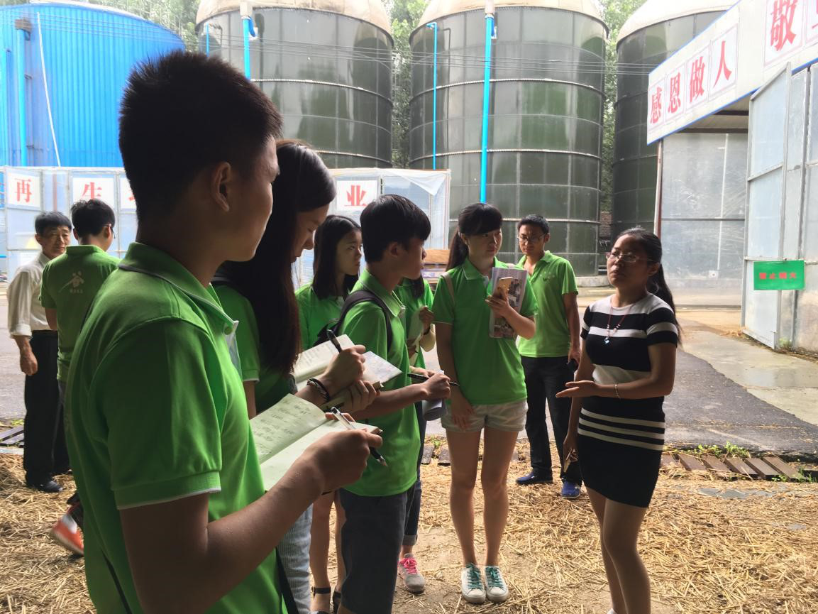 队员们首先与基地负责人取得联系,参观牛场养殖棚区,了解厂区的运行模式。通过负责人的讲解,队员们得知牛羊粪便在为沼气生产提供原料的同时,也为菌类的养殖提供条件。随后,队员们参观食用菇种植基地和秸秆收储基地,学习食用菇种植方法,并就所发现的问题咨询相关负责人。参观结束后,队员们纷纷表示该基地的生产种植循环线虽然简单,却十分有效,值得相关公司学习借鉴。