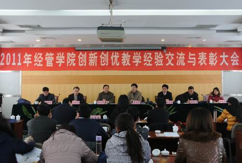 全体教工在周口召开了2011年经管学院创新创优教学经验交流与表彰大会,教务处副处长宋安东教授、学校本科教学督导委员会常务副主任杨明亮教授、牧医工程学院副院长宁长申教授、教务处教学质量科科长朱芬菊老师受邀出席了会议。会议由德州扑克单机
