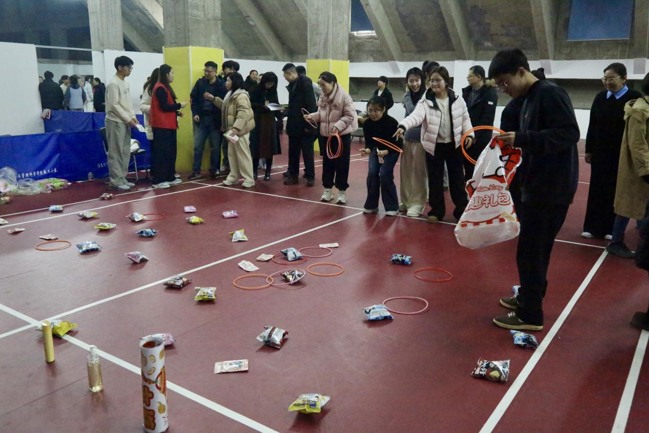 本次趣味运动会以“‘经’彩飞扬,‘马’上快乐”为主题,设置集体与个人两大类别趣味项目,兼顾协作性与趣味性。集体项目中,“一圈到底”考验团队协作的默契;“传球接力”则让老师和同学们完成接力轮换,紧张又欢乐。个人项目同样精彩纷呈,趣味投壶、飞镖投掷以精准度和用时决胜,套圈游戏则让参与者在轻松投掷中收获惊喜,赛场下,加油声、欢呼声此起彼伏,欢声笑语弥漫。无论是集体项目中整齐划一的协作,还是个人项目里专注投入的身影,都展现出经管人积极向上的精神风貌。